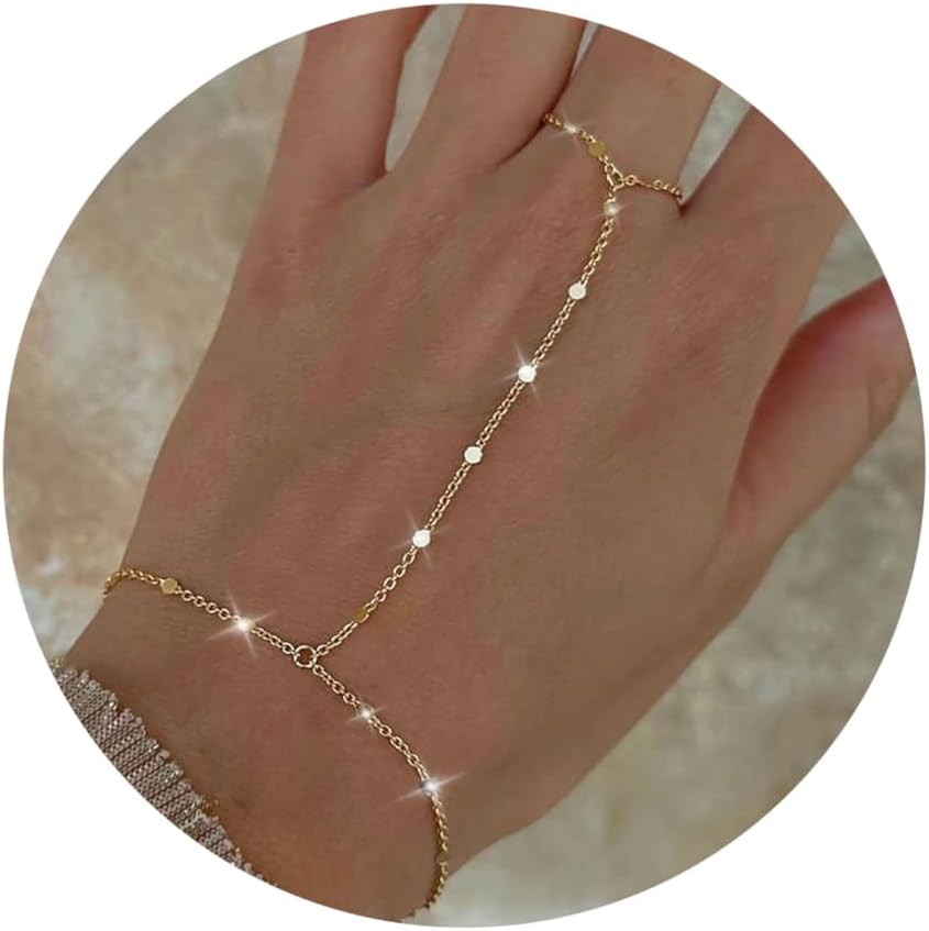 Hand Chain Gold Silver Bracelets for Women 14K Gold plated Hand Chain Bracelet Non Tarnish Satellite Bead Dot CZ Pearl Link Ring Bracelet Trendy Hand Jewelry Gifts for Women Adjustable