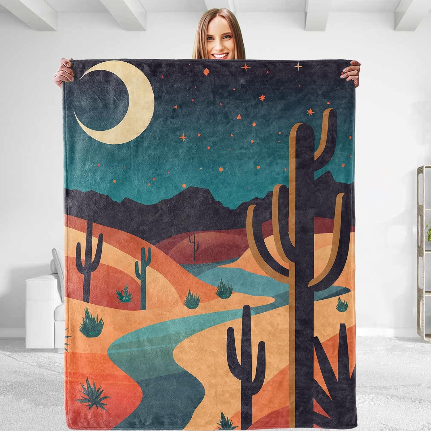 Cactus Theme Throw Blanket - Soft Plush Flannel Blanket, Lightweight, Comfy, Fuzzy, Warm, Anti-Pilling for Sofa, Bedroom, Bed, Living Room, Outdoor 50in×60in