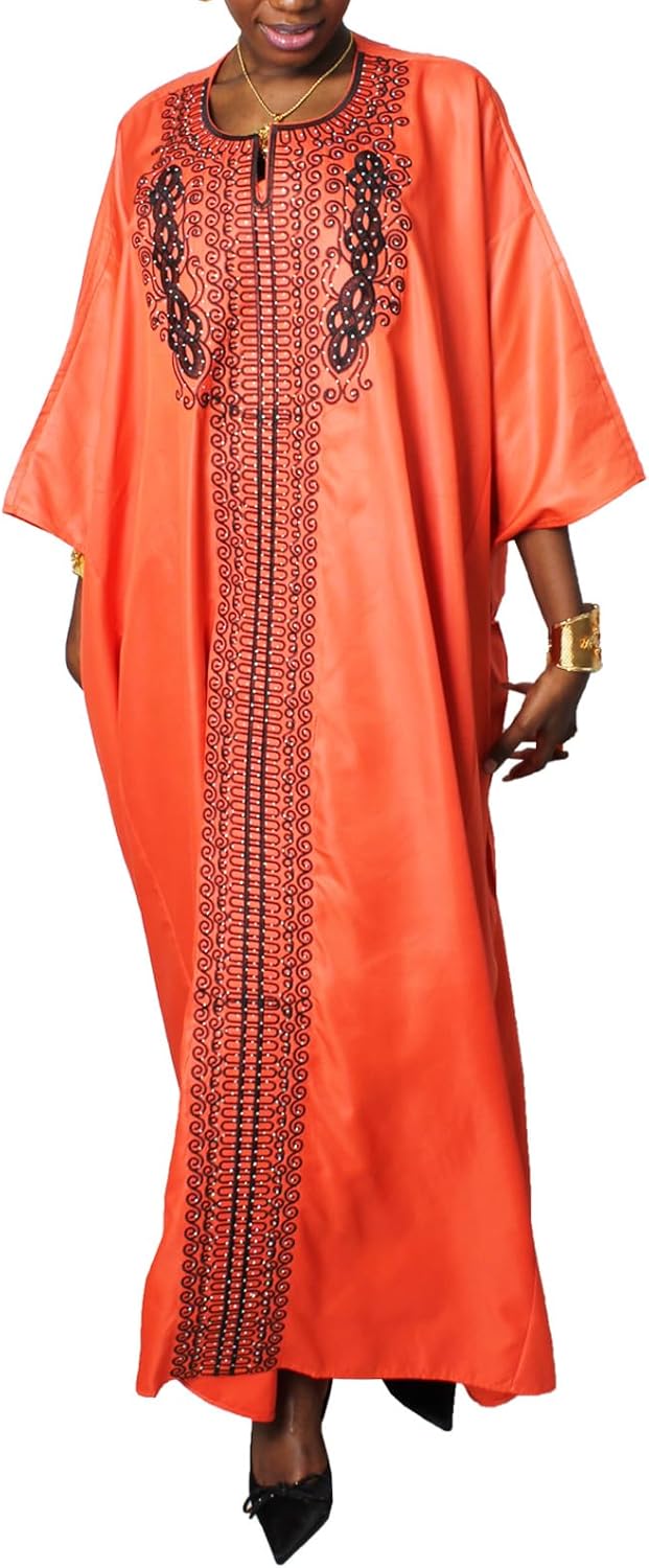 TIDOIRSA Loose African Dresses for Women,Hot Drilling Full Gown Embroidery Maxi Dress