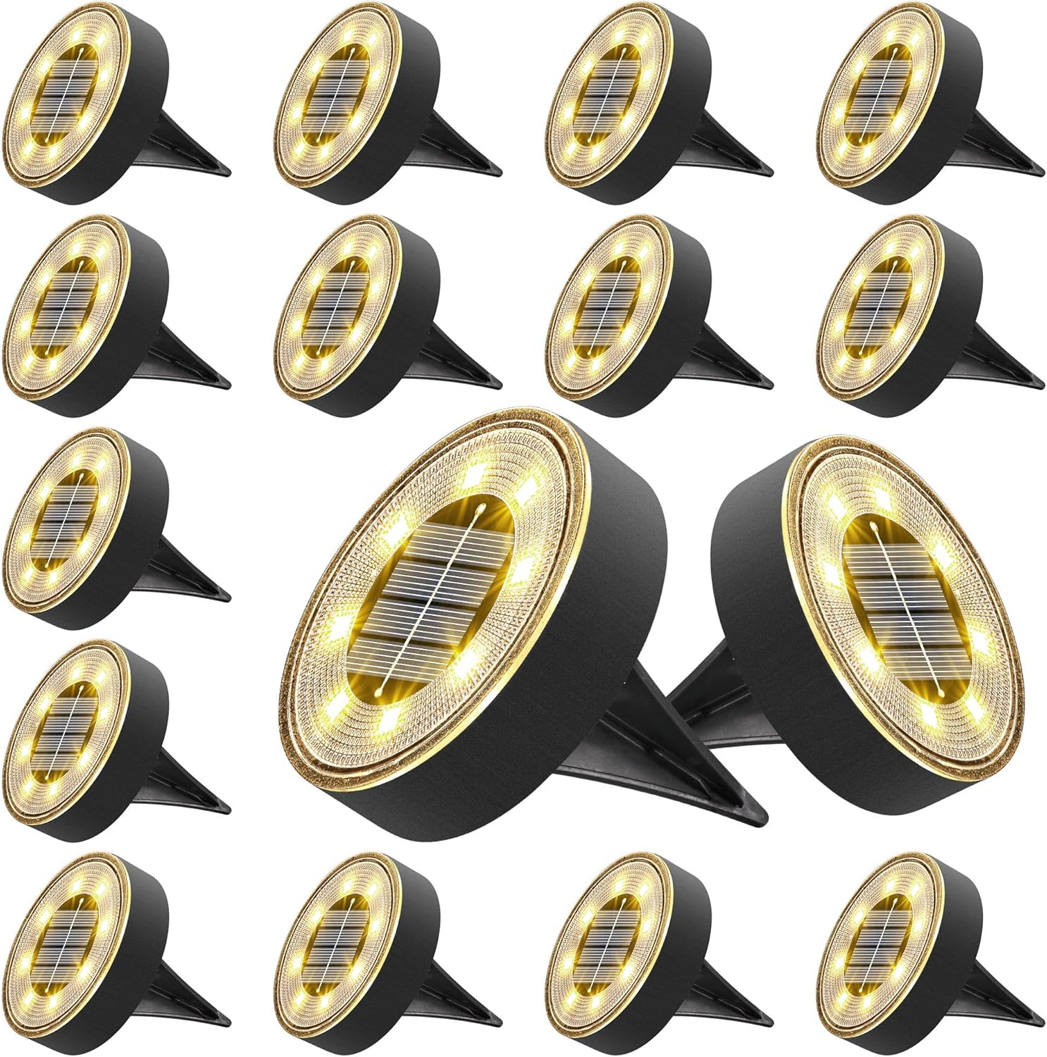 Joomer Solar Ground Lights, 16 Pack 8 LED Solar Lights Outdoor IP68 Waterproof Disc Light In-Ground Landscape Lighting Outdoor for Patio Pathway Lawn Yard Driveway Walkway (Warm White)