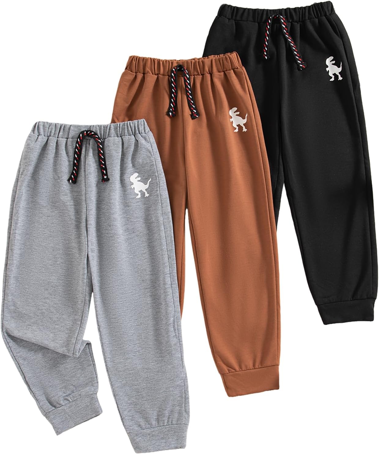 Toddler Boy Pants Fall Winter 2T 3T 4T 5T Little Kids Boy Sweatpants 3 Pack Drawstring Elastic Pants Size 6 7