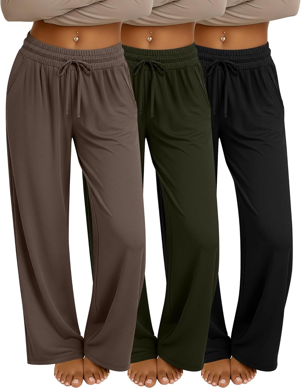 Neer 3 Pack Women's Baggy Sweatpants with Pockets, Wide Leg Yoga Pants Cozy Thick Lounge Pants Drawstring Casual Loose Jogger