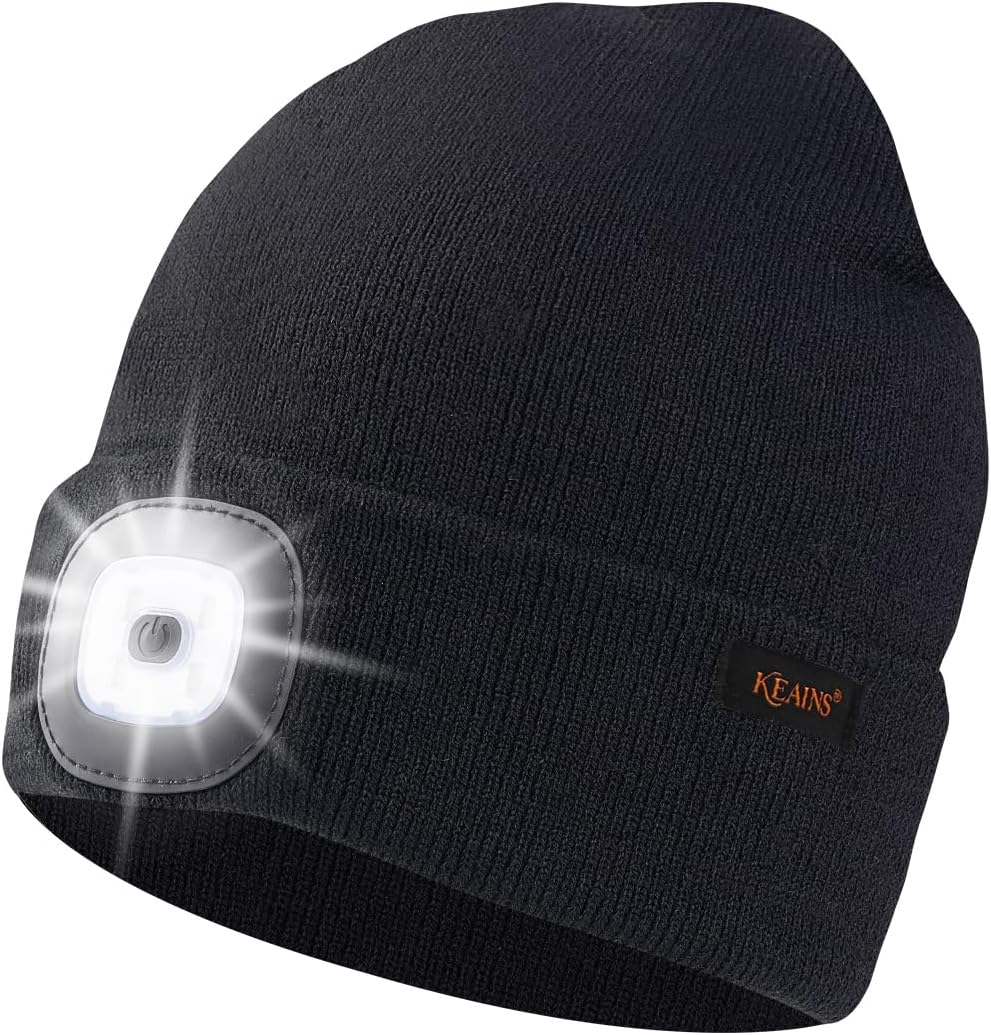 Keains Unisex Beanie with The Light ,Rechargeable LED Headlamp Cap, Warm Knit Hats for Winter Safety Gifts for Men Women Dad