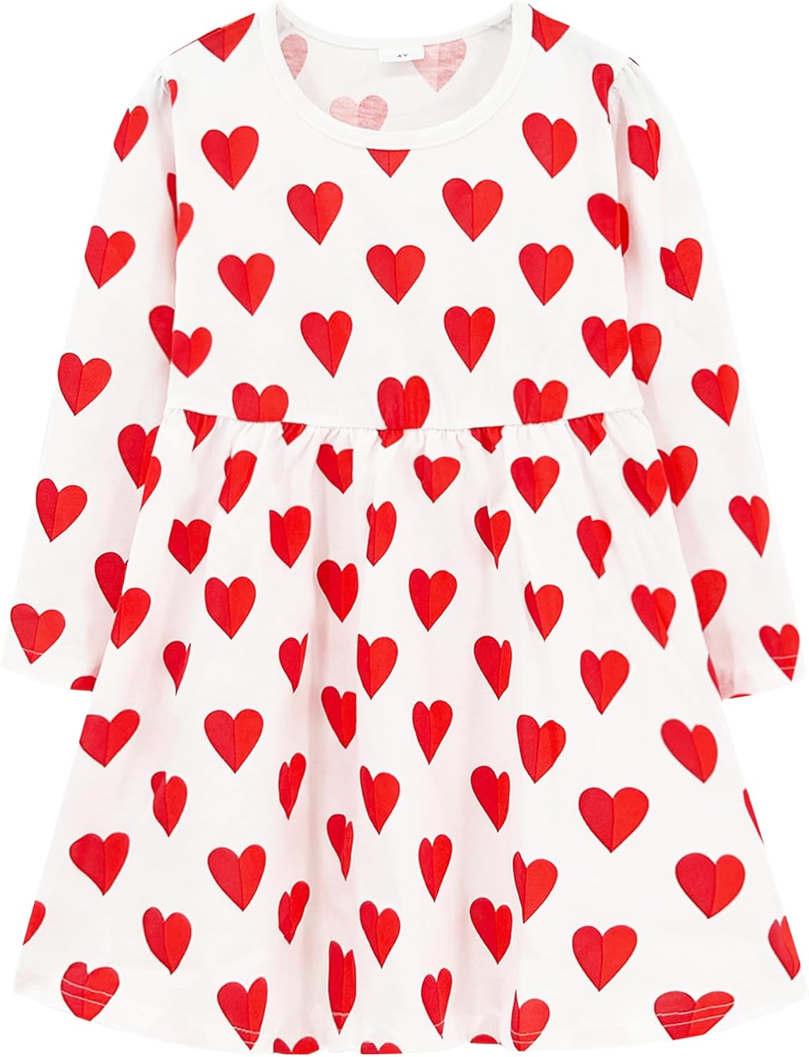 HILEELANG Toddler Girl Long Sleeve Dress Cotton Casual Jersey Shirt Playwear Applique Dress