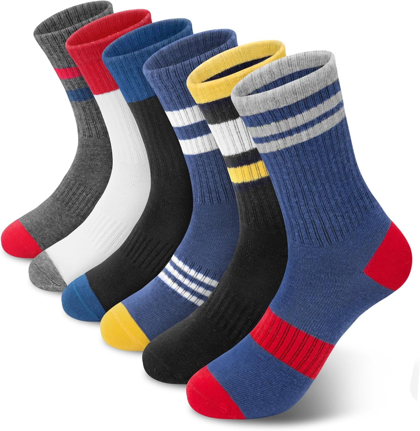 6 Pairs Toddler Kids Boys Basketball Athletic Crew Socks, Youth Girls Cozy Casual Striped Seamless Cotton Sports Socks