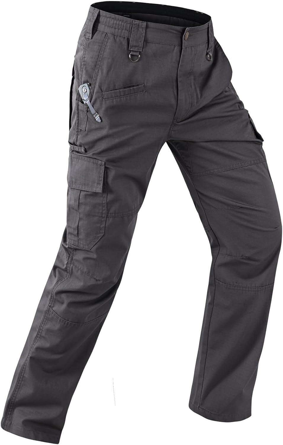 Mens Work Pants Water Resistant Elastic Waist Outdoor Breathable Cargo Tactical Pants with 8 Pockets
