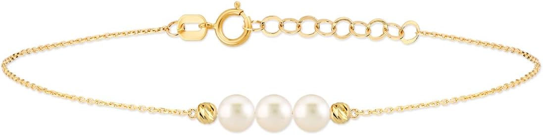 Gelin 3.5-4 mm Pearl Station Bracelet in 10kt Yellow Gold, Simple Pearl Bracelet, Trendy Cute 10k Gold Bracelet Jewelry for Women, 6+1 inches, Adjustable