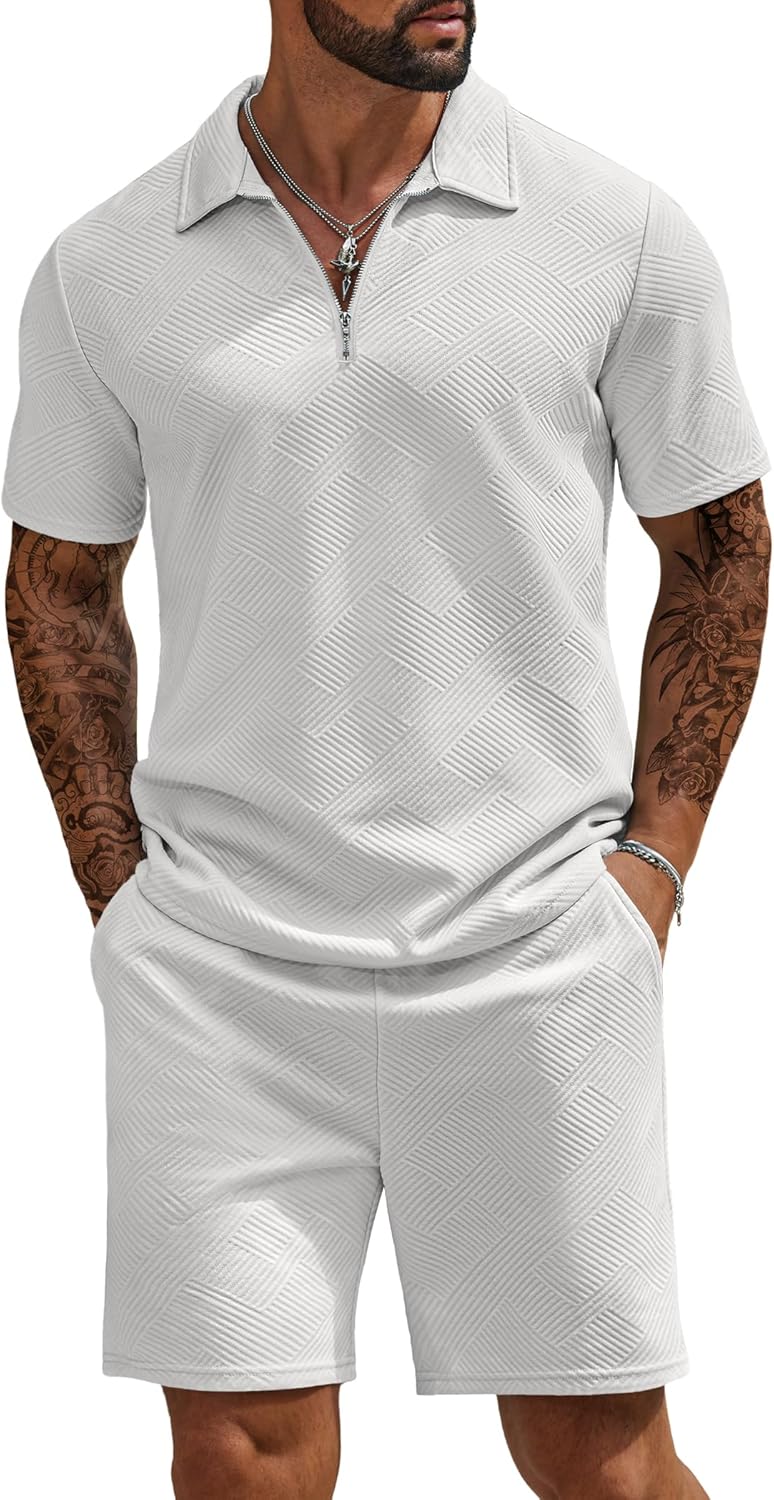 COOFANDY Mens Tracksuit Casual 2 Piece Quarter Zip Polo Shirt and Shorts Set Athletic Jogging Sports Outfits