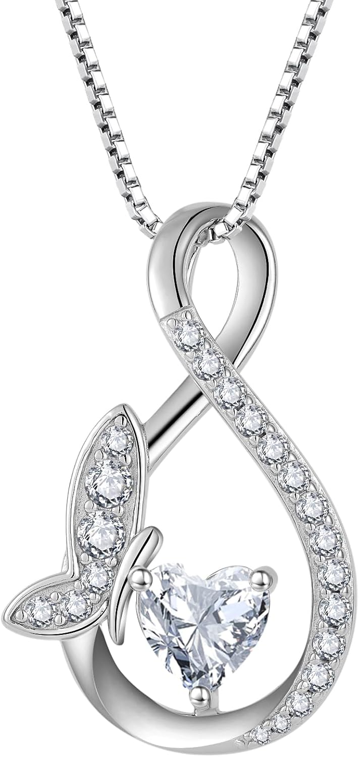 Infinity Butterfly Necklace for Women 925 Sterling Silver Heart Birthstone Created Gemstone Pendant Jewelry Gifts for Women Her