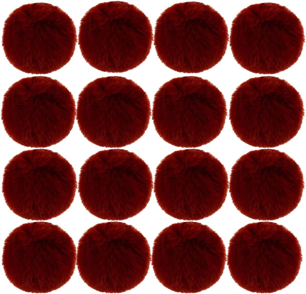 16pcs DIY Pom Pom Balls for Keychain Faux Rabbit Fur Ball Key Ring for hat Phone Tag, Handbag Charm,Wine red Color