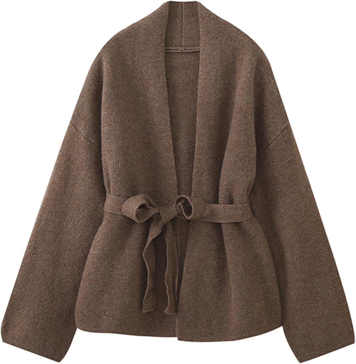 HOULENGS Women's Casual V Neck Belted Wrap Cardigan Sweaters Open Front Long Sleeve Chunky Knit Sweater Coat