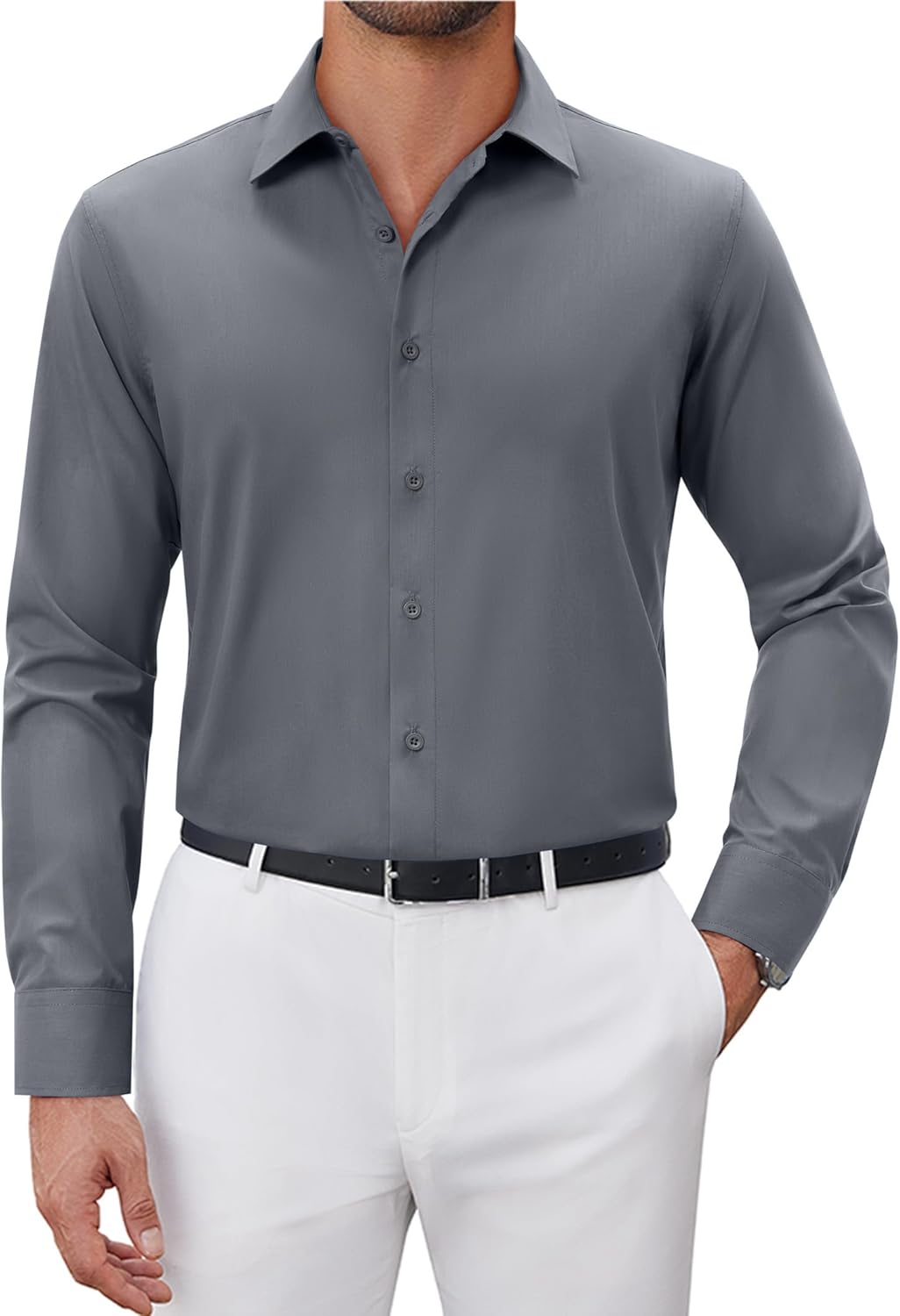 Men's Dress Shirts Long Sleeve Wrinkle Free Stretch Solid Formal Business Casual Button Down Shirt