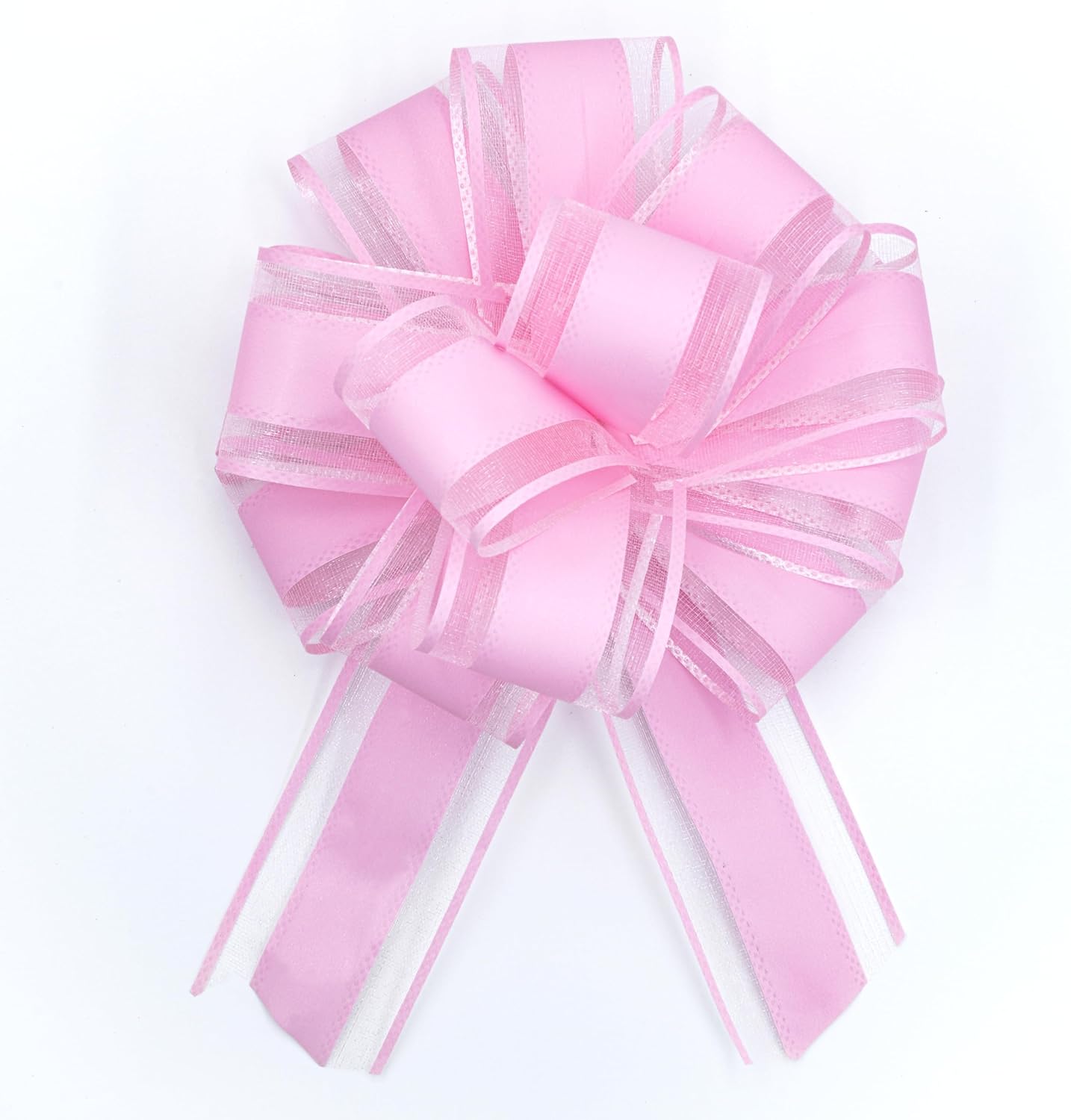 6 PCS Large Pull Bows 6 Inch Light Pink Bows for Gift Wrapping Wedding Basket Christmas Birthday Party Valentine's Day Gift Boxes and Flower Decorations