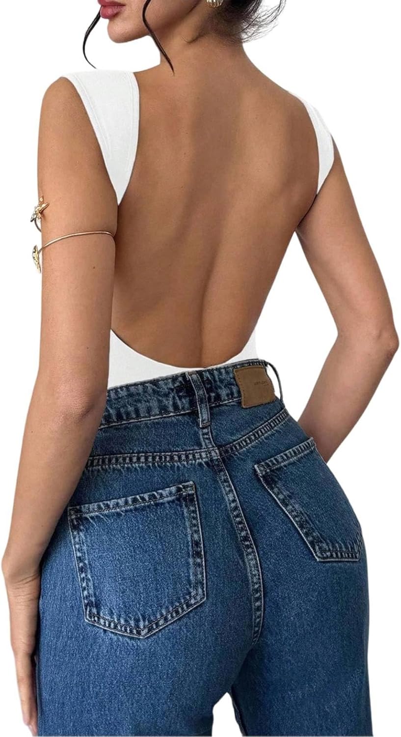 Milumia Women Sexy Open Back Tank Top Bodysuit Boat Neck Sleeveless Party Leotards