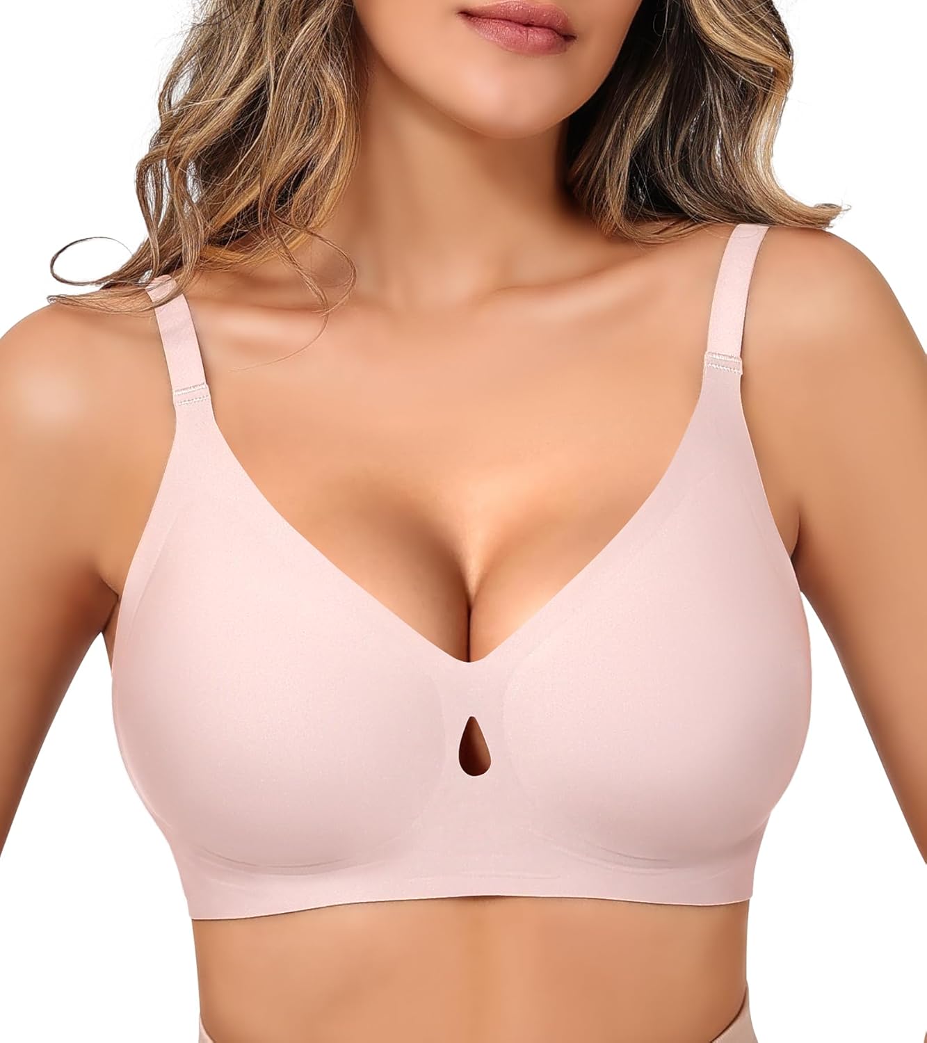 Seamless No Underwire Bras, Wireless Bras for Women, Push Up Full Coverage Bralettes Comfortable Everyday Bralette——Skin, Medium