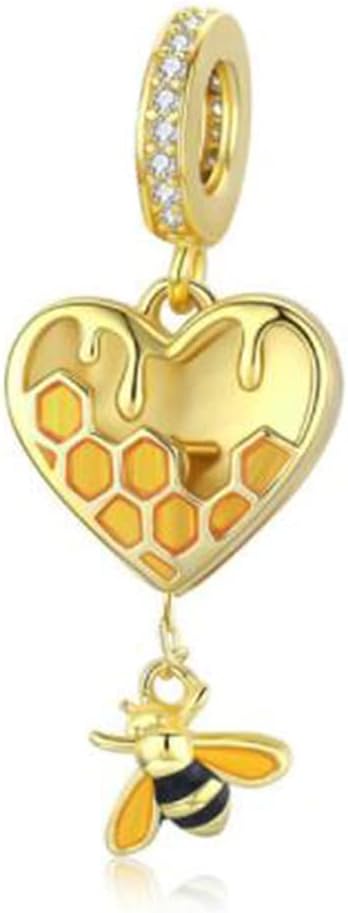Yellow Crystal Honey Bee Chrms Sterling Silver Christmas Charm Spacer Bead Animal Charm for Women Bracele (Bee Pendant