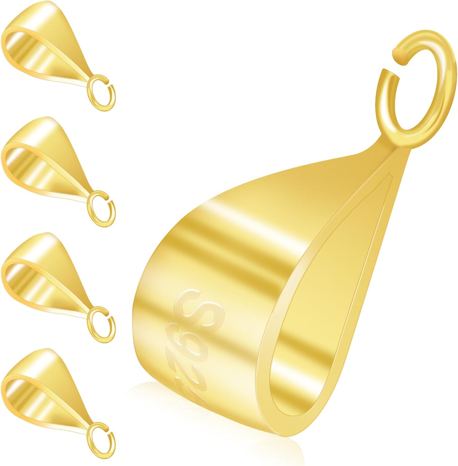 - 【Perfect Sizes】Pendant bail clasp size:4.5 x 11mm / 0.18 x 0.43in with 3.0mm / 0.12in opened loop. The top loop of jewelry bail is wide enough to slide through metal chain, waxed cords, strings, ropes, and easy to fix to the pendant. We have two colors available: silver and gold. Natural colors can complement your jewelry perfectly, adding charm to your jewelry.