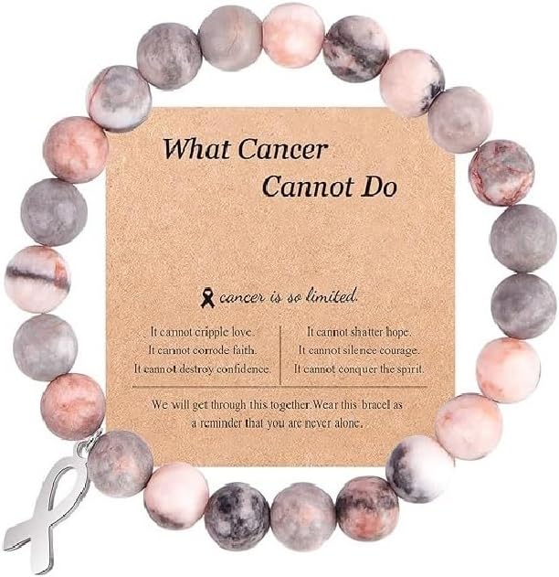 Breast Cancer Bracelets Natural Stone What Cancer Cannot Do Inspirational Bracelet for Women Pink Ribbon Cancer Awareness Handmade Beaded Encouragement Gift With Message Card