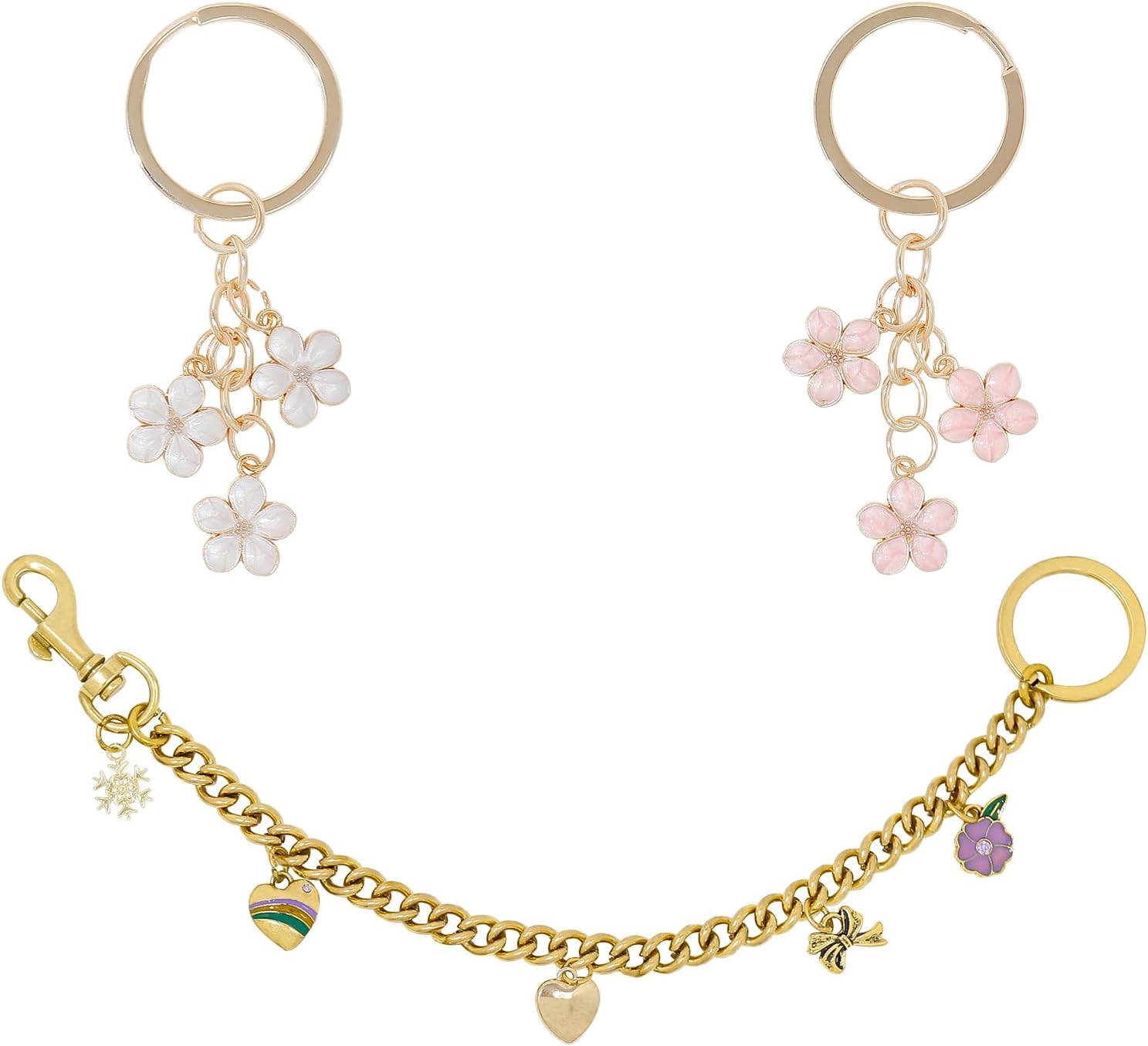Bag Charms, Heart Cute Keychain for Women Gold Purse Charms for Handbags Bag Chain Bag Accessories (Flower Heart)