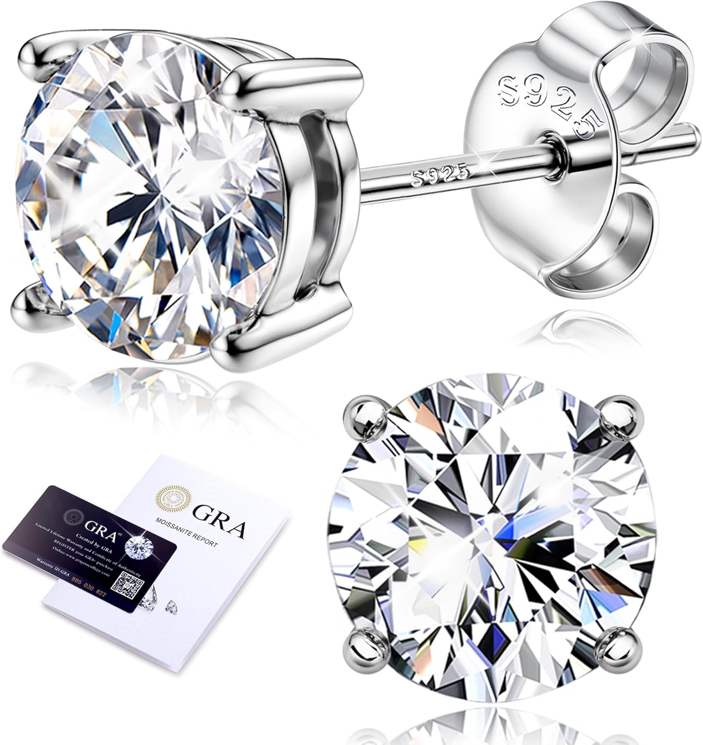 Moissanite Stud Earrings 18K White Gold Plated Brilliant Round Cut Solid 925 Sterling Silver Hypoallergenic Dainty Moissanite Jewelry for Sensitive Ear D Color VVS1 Clarity for Women Men 0.8CT-3CT