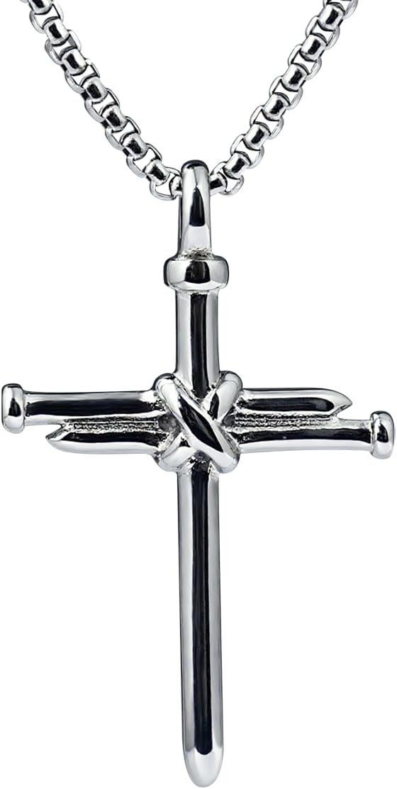 Nail Cross Necklace 316L Stainless Steel Cross Pendant Christian Jesus Jewelry for Men Women Birthday Father’s Day Gift (with Box Packaged)