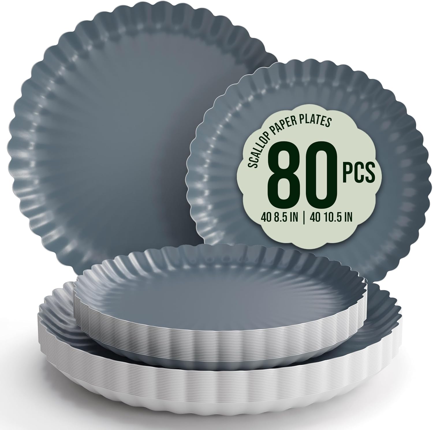 Trendables Floral Paper Plates 8.5 Inch & 10.5 Inch 80 Pcs Dinner Plate Set Fancy Disposable Plates for Party for 40 Guests 40 X 8 & 40 X 10 Large & Small Paper Plate Set for Parties Slate Blue