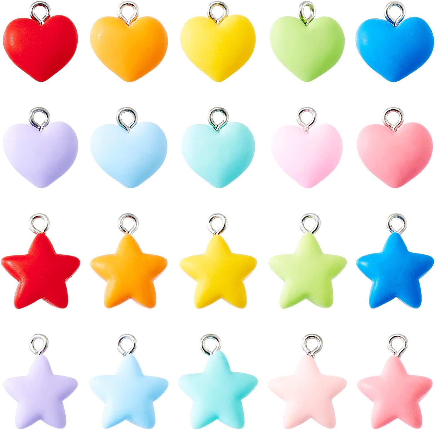 Heart Charms 40 Pcs Cute Resin Sweet Heart Charms Valentine Love Star Earring Dangle Pendants for Jewelry Making Bracelets Necklace Earrings