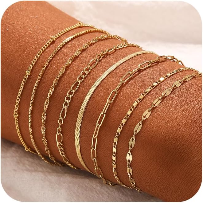Bracelets for Women, Waterproof 14K Gold/Silver Plated Stackable Bracelets for Women Non Tarnish Trendy Dainty Paperclip Figaro Box Herringbone Hand Chain Bracelet Pack Stack Adjustable Jewelry for Women