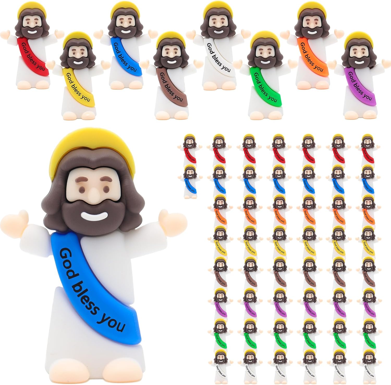 - Unique Color Combination:This mini jesus figurines in bulk offers 8 colors (Red, Blue, White, Yellow, Purple, Brown, Orange, Green), allowing for personalized combinations for any religious event, party, or home decoration.