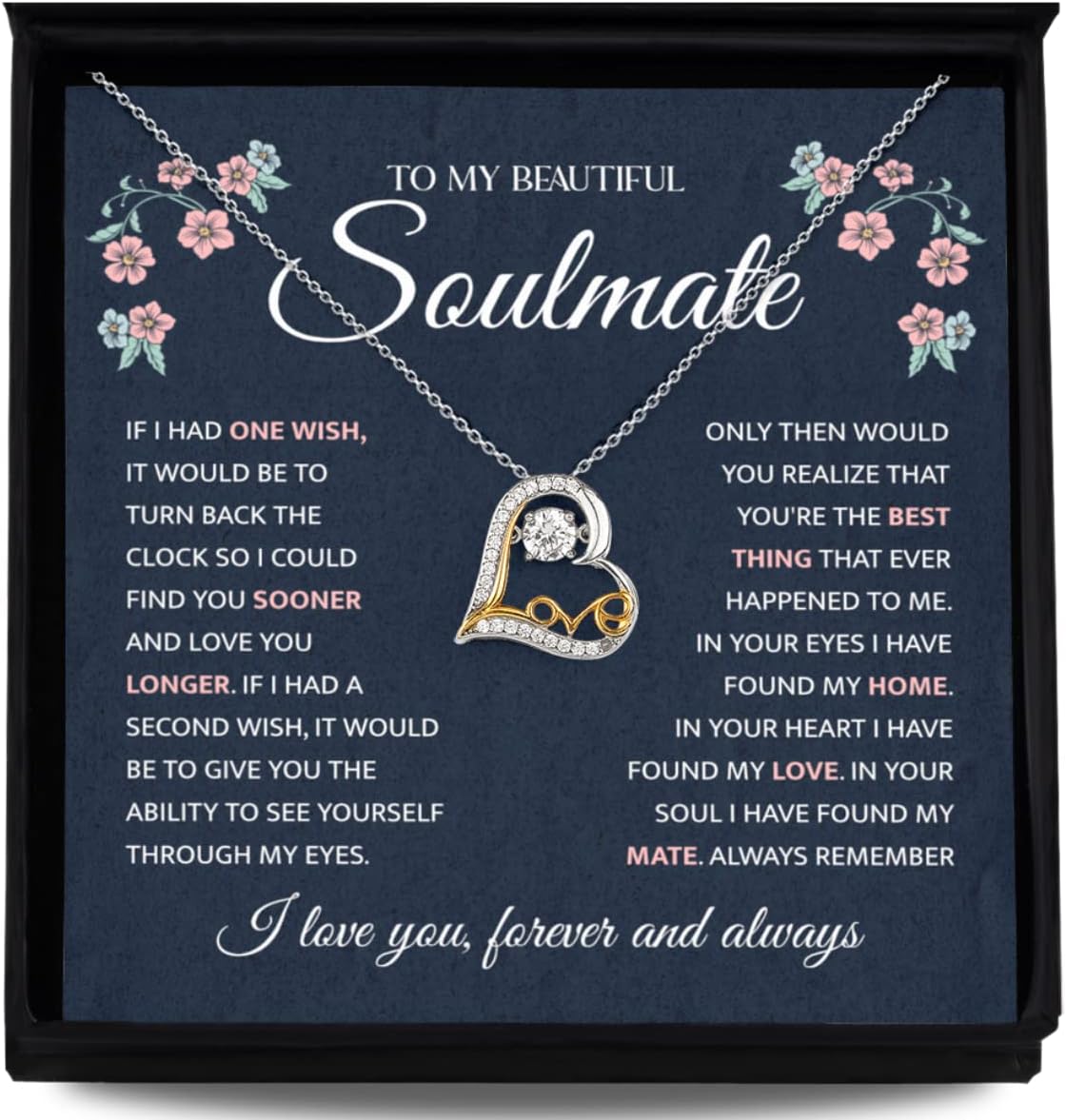 To My Beautiful Soulmate Necklace, Sterling Silver Missing Piece Love Heart, Gifts For Wife Birthday, From Husband, Gold heart is triple plated in 14K gold., Cubic Zirconia