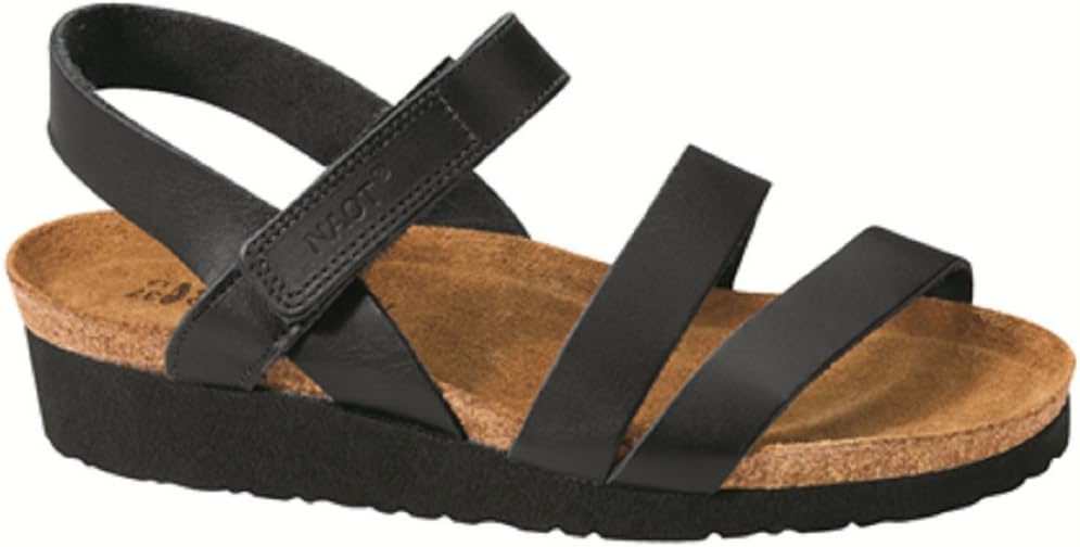 NAOT Kayla Women's Sandals – 3-Strap Support with Backstrap, Cork-Latex Footbed, Arch Support – Comfortable for All-Day Walking Black Matte Leather 13-13.5 N-M US