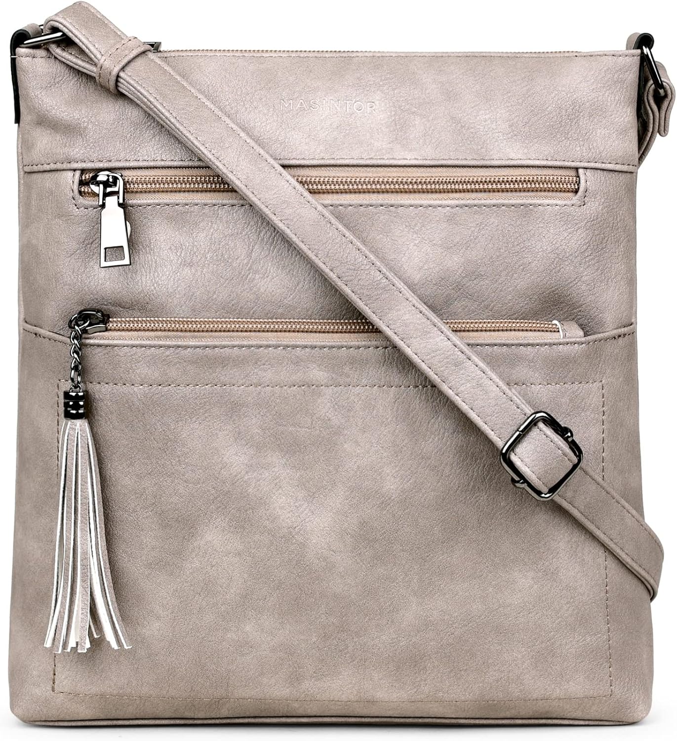 MASINTOR Crossbody Purses for Women, Multi Pocket Casual Crossbody Bag, Adjustable Strap Shoulder Bag with Tassel