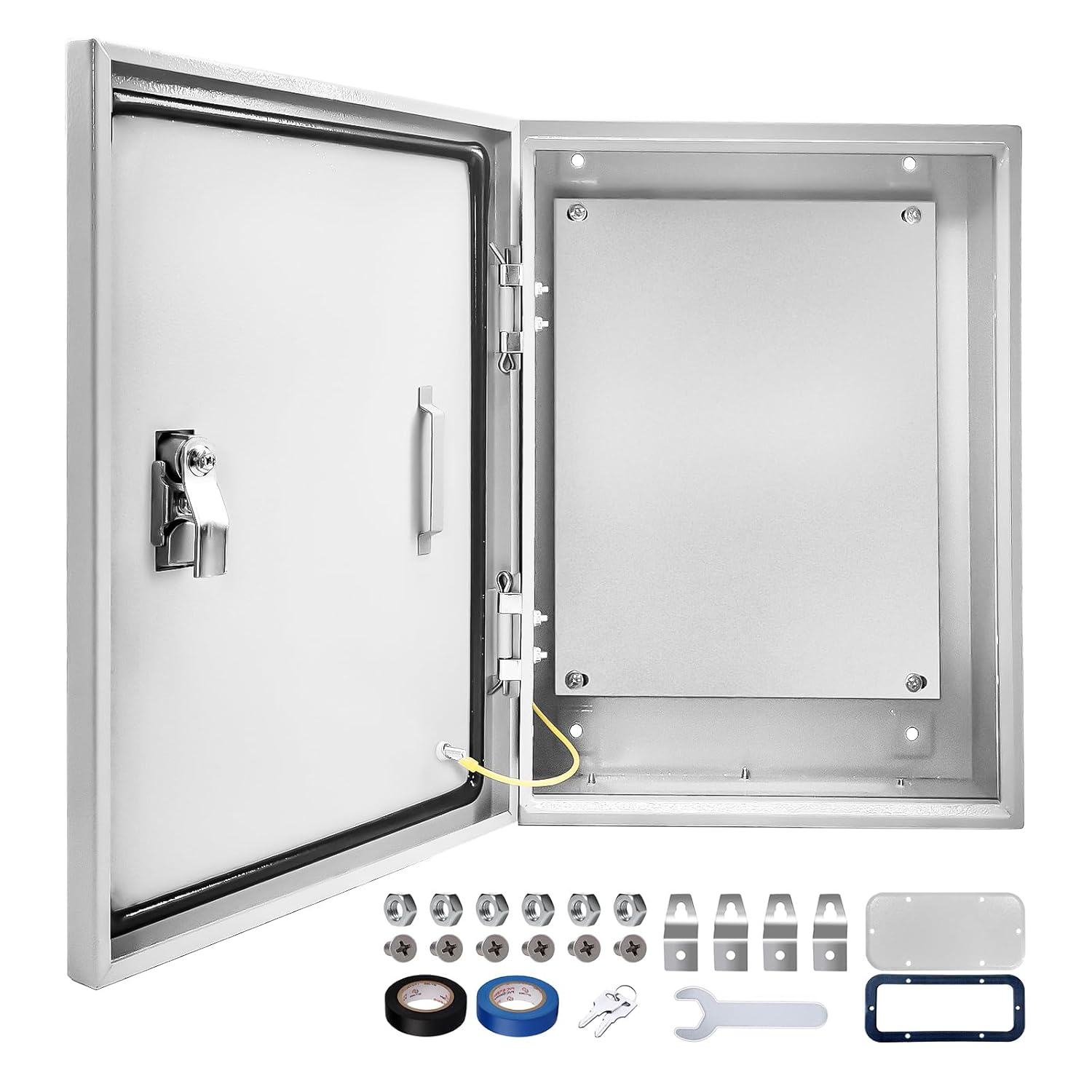 Outdoor Electrical Box 20 x 12 x 10''D NEMA 4X Enclosure Steel Box, Waterproof & Dustproof Outdoor/Indoor Lockable Electrical Junction Box, with Mounting Plate