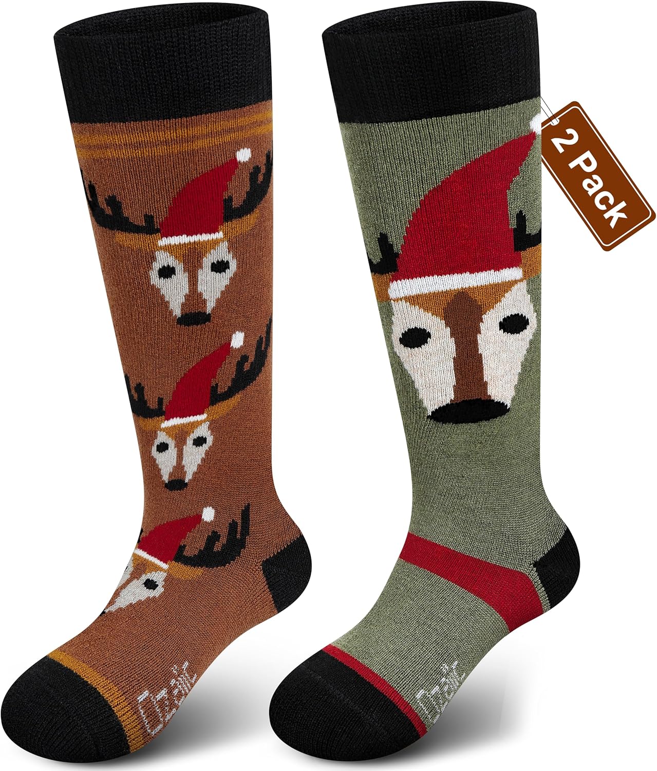 Socks Daze 2 Pack Kids Merino Wool Blend Ski Socks Knee High Winter Warm Snowboard Skating Socks for Boys Girls Toddler
