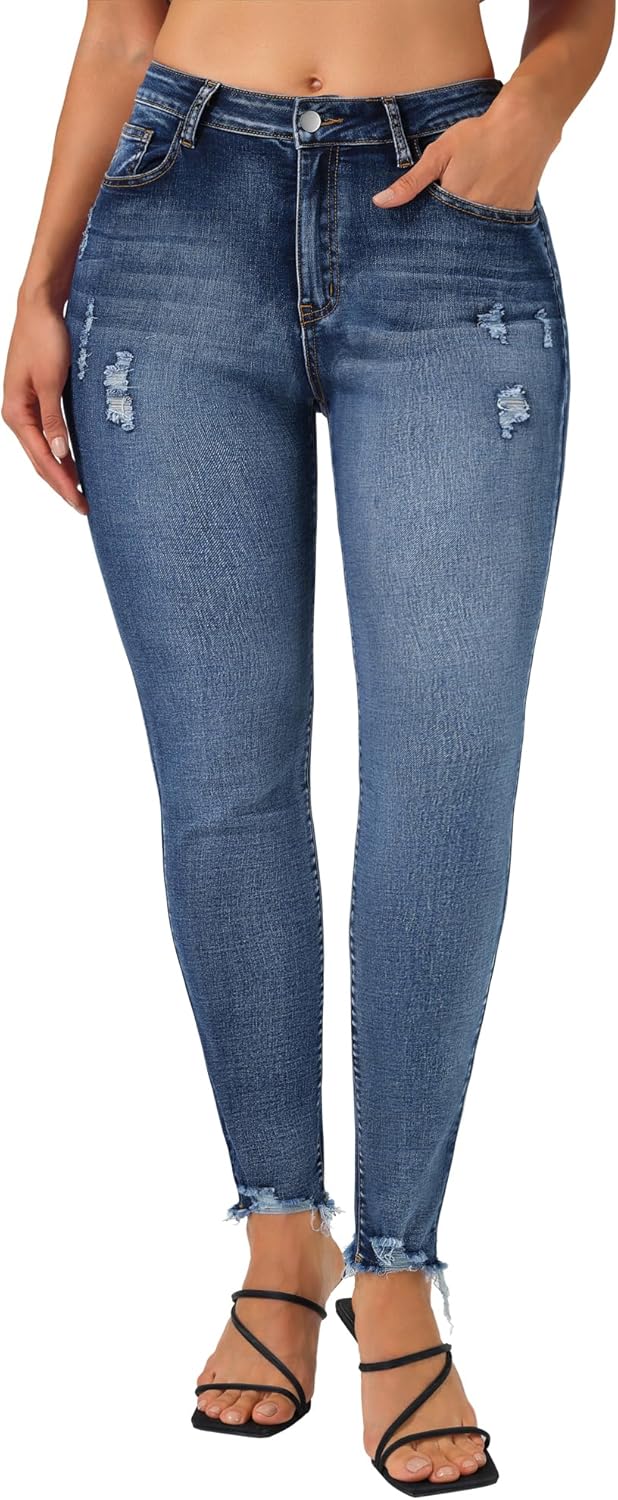 roswear Skinny Jeans for Women Mid Rise Ripped Stretchy Denim Pants Trendy Slim Fit Distressed Jeans