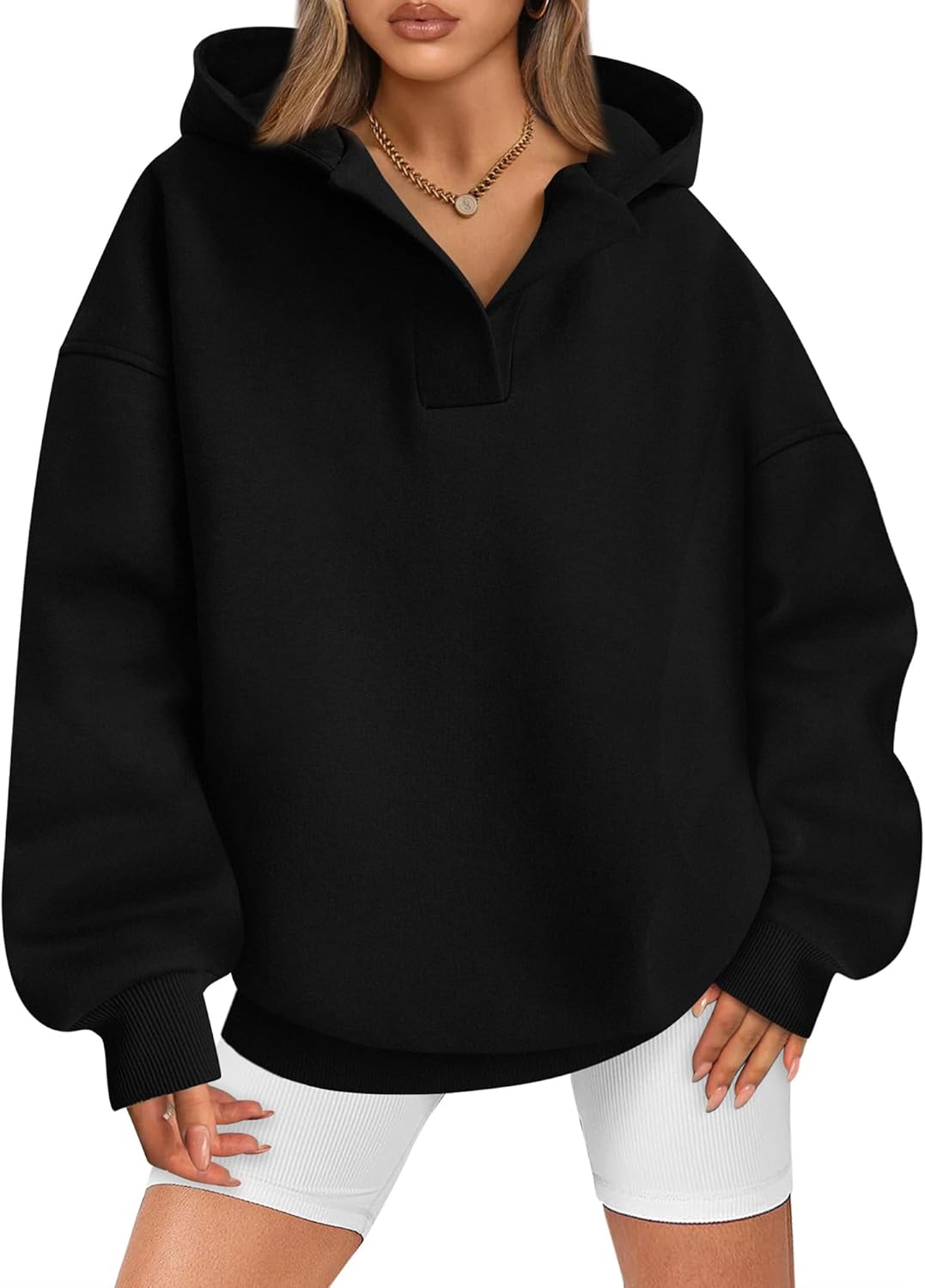 BTFBM Women's Oversized Hoodies Casual Fleece Long Sleeve V Neck Sweatshirts 2026 Trendy Fall Outfits Spring Clothes