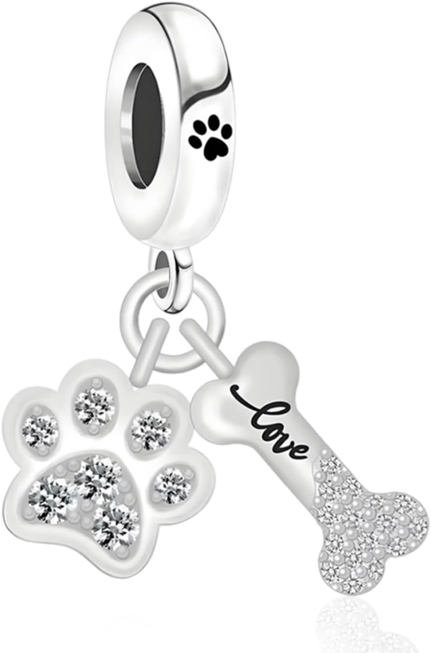 Pet Footprint Bone 2-in-1 Pendant 925 Sterling Silver Charm Fit Women's Necklace Pendant Birthday Jewelry Gift