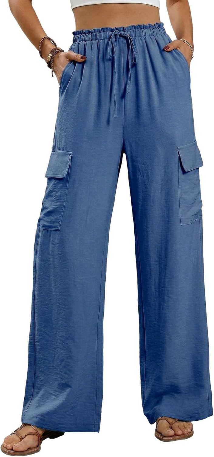 EVALESS Women Wide Leg Cargo Pants Summer Casual Drawstring Waist Lounge Trousers 2026 Beach Vacation Travel Clothes