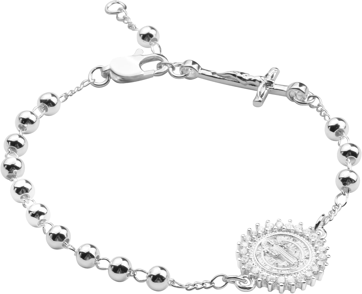 4mm Silver Plated Beads Catholic Rosary Chain Bracelet for Women with Gift Box