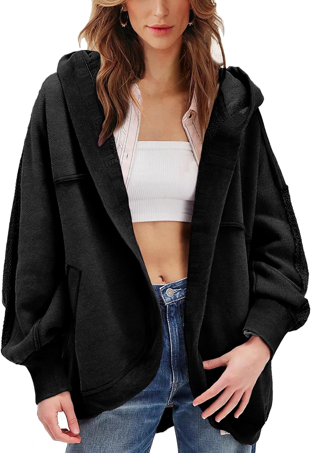Womens Oversized Hooded Cardigan Jacket Open Front Raglan Sleeve Sweatshirt 2026 Spring Outfits with Pockets