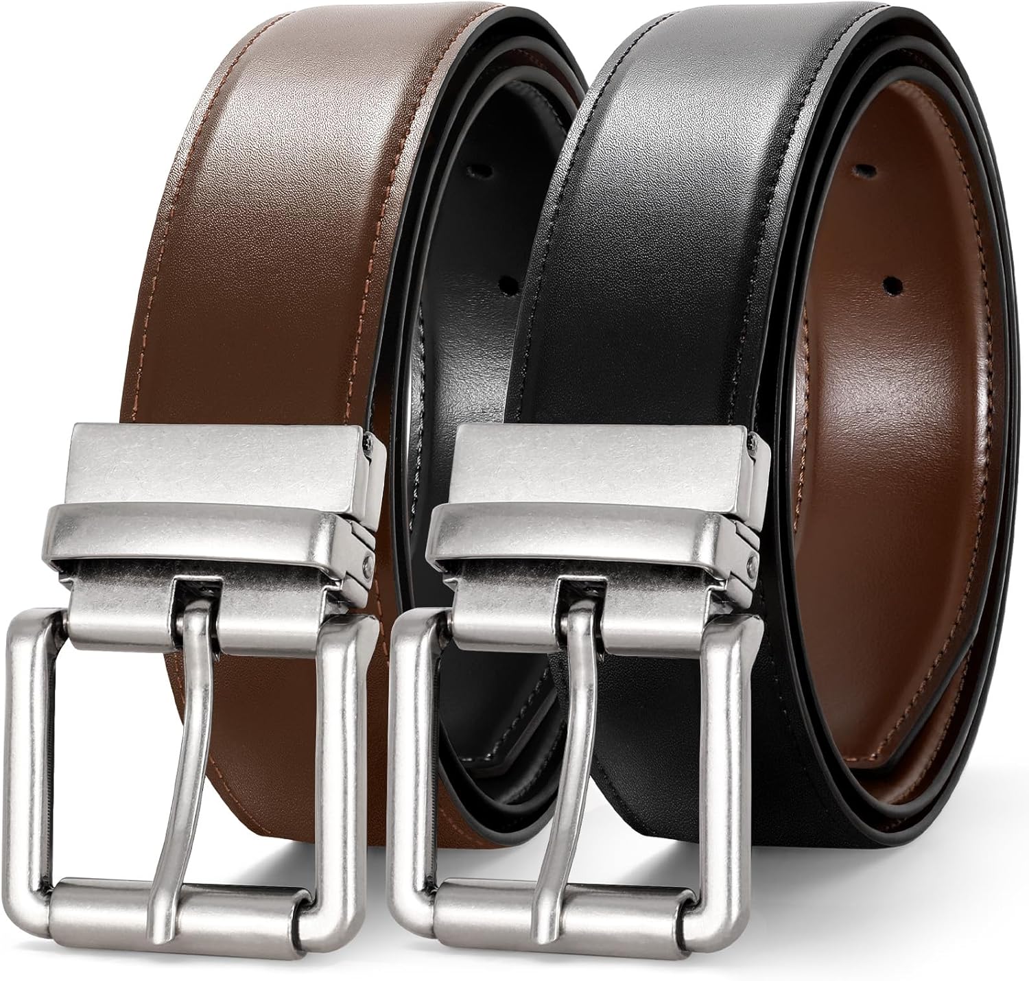 JASGOOD Men's Belt, Reversible Leather Belts for Men for Dress Pants, One Reverse For 2 Sides Casual Belt
