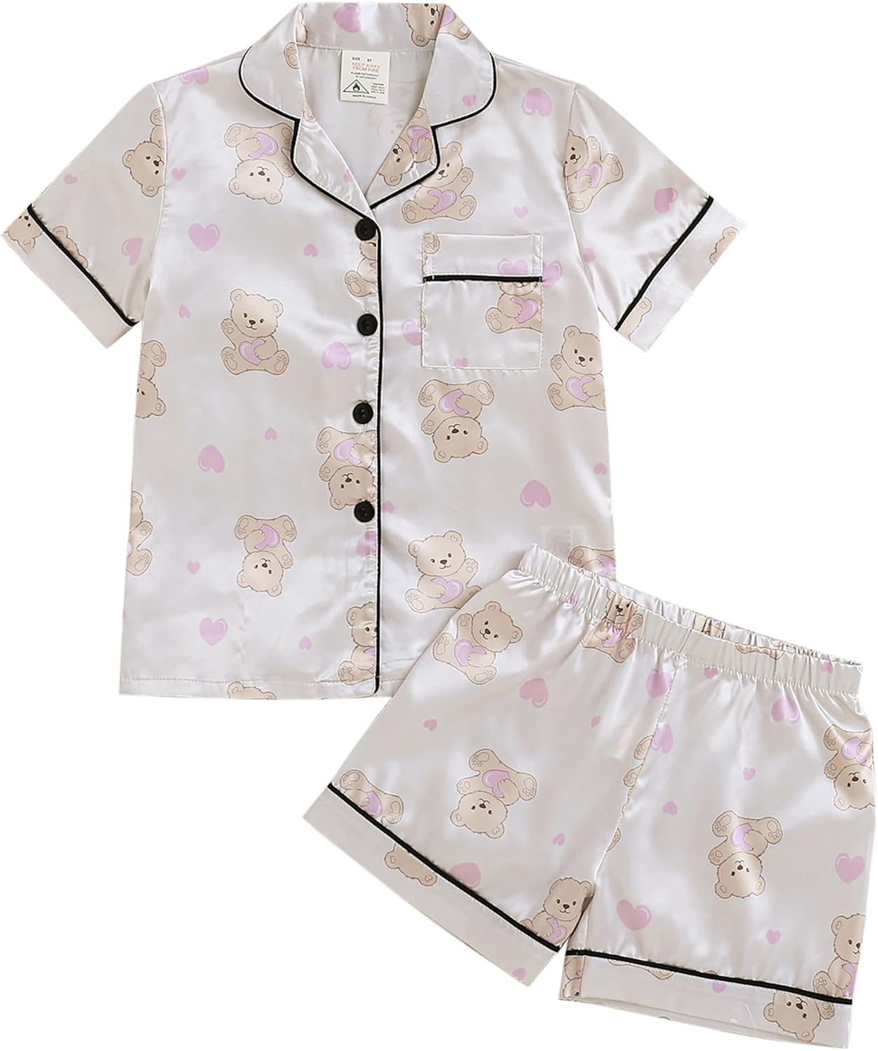 MyFav Girls Pajama Set Short Sleeve Button Down Silky Satin Girls PJS Kids Sleepwear Summer Nightwear Loungewear Set