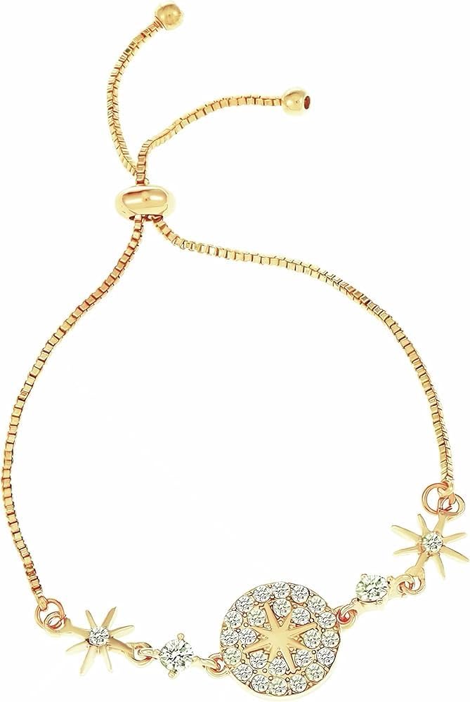 Dainty Sun Star Link Bracelet, 14K Gold Plated, Adjustable Chain, Natural White Crystal Diamond Bracelet, Zirconia Bracelet for Women