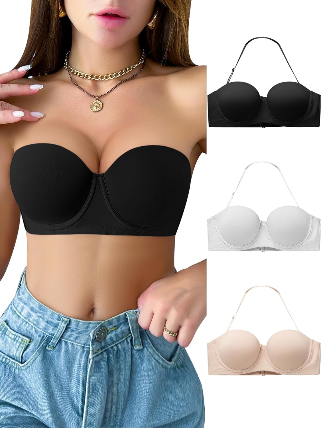 Women's Strapless Bra, Backless Self-Adhesive Bra, Multiway Invisible Straps, Push-Up Lift, Everyday Lingerie for Women