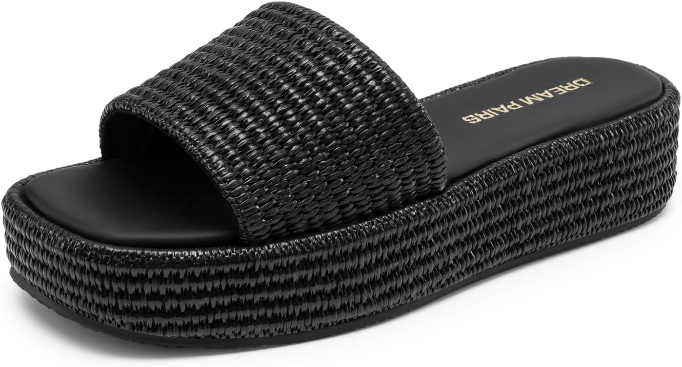 DREAM PAIRS Women Platform Slides Sandals Espadrilles Slip On Low Wedge Summer Open Toe Bohemia Dressy Beach Vacation Shoes