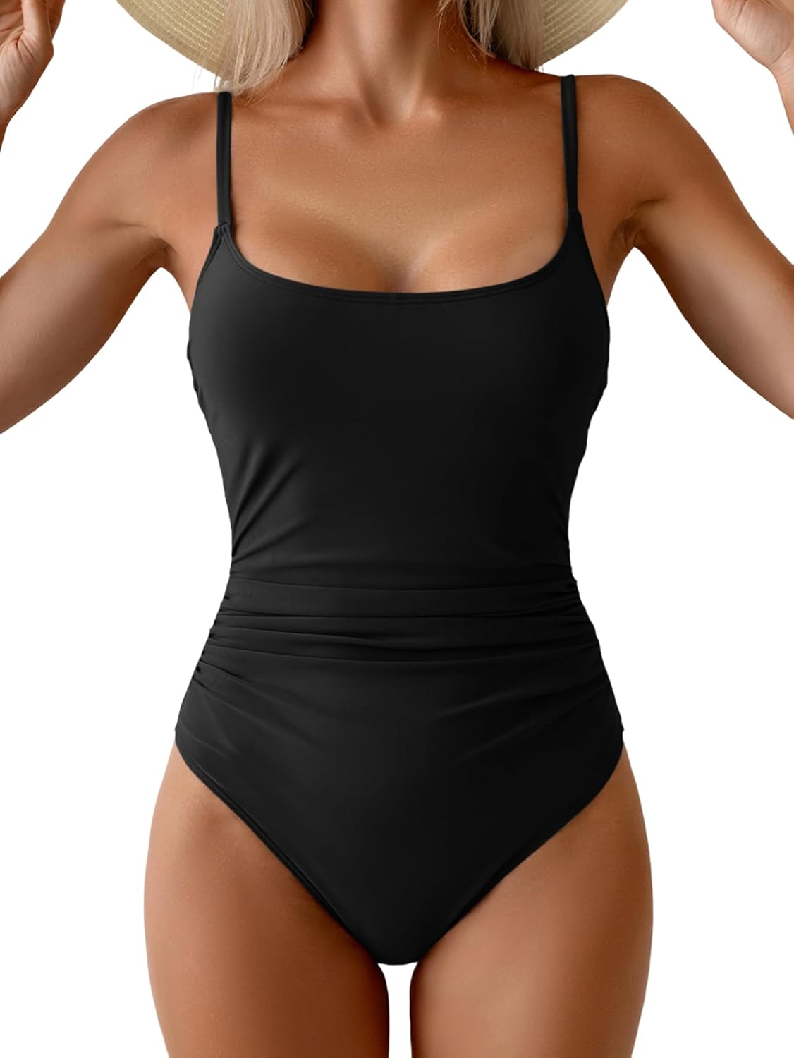 One Piece Swimsuit for Women Tummy Control Square Neck Bathing Suit Tie Back Cutout Swim Suit with Spaghetti Straps