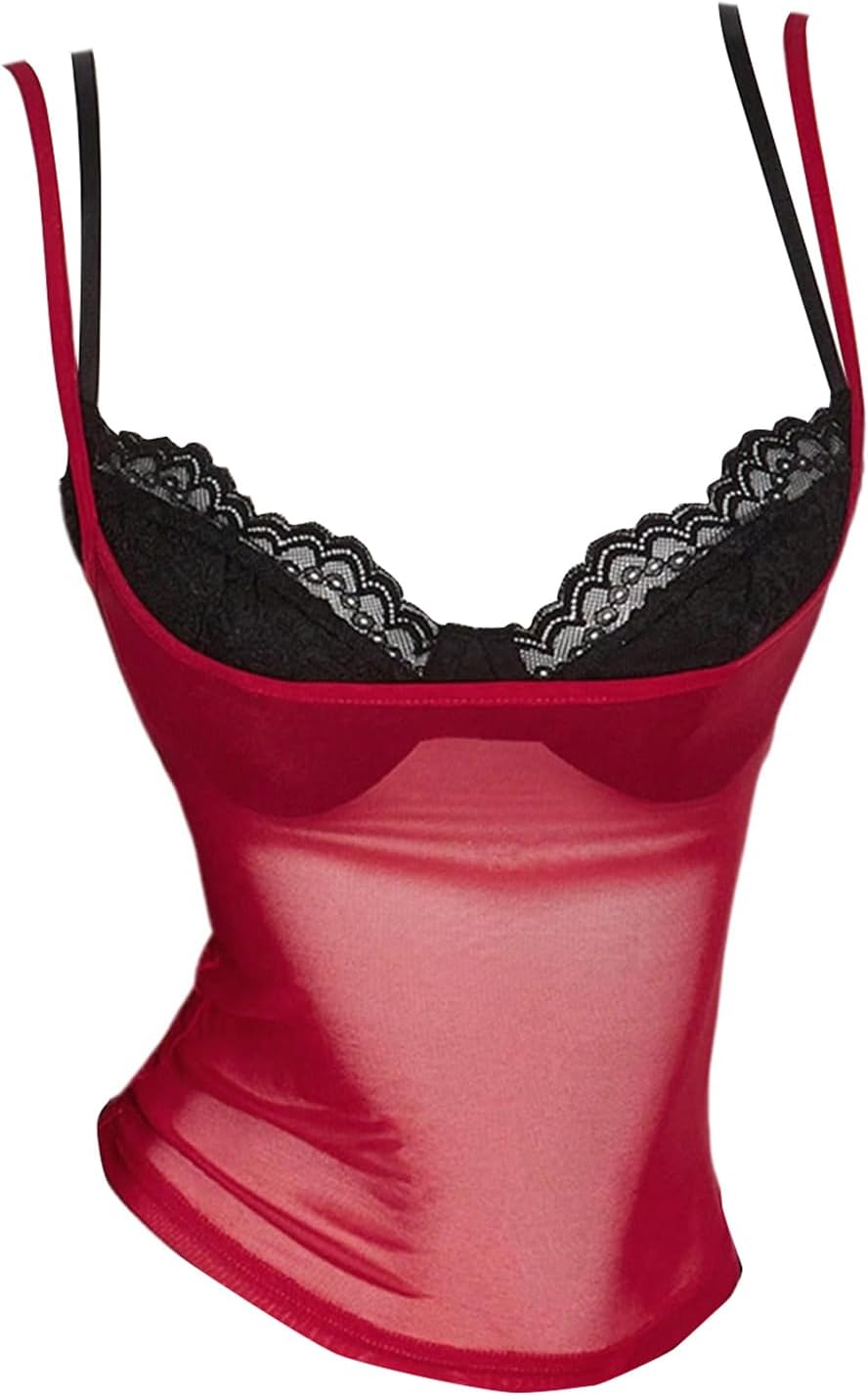 Floerns Women's 2 Piece Sheer Mesh Spaghetti Strap Y2k Cami Top with Lace Bralette
