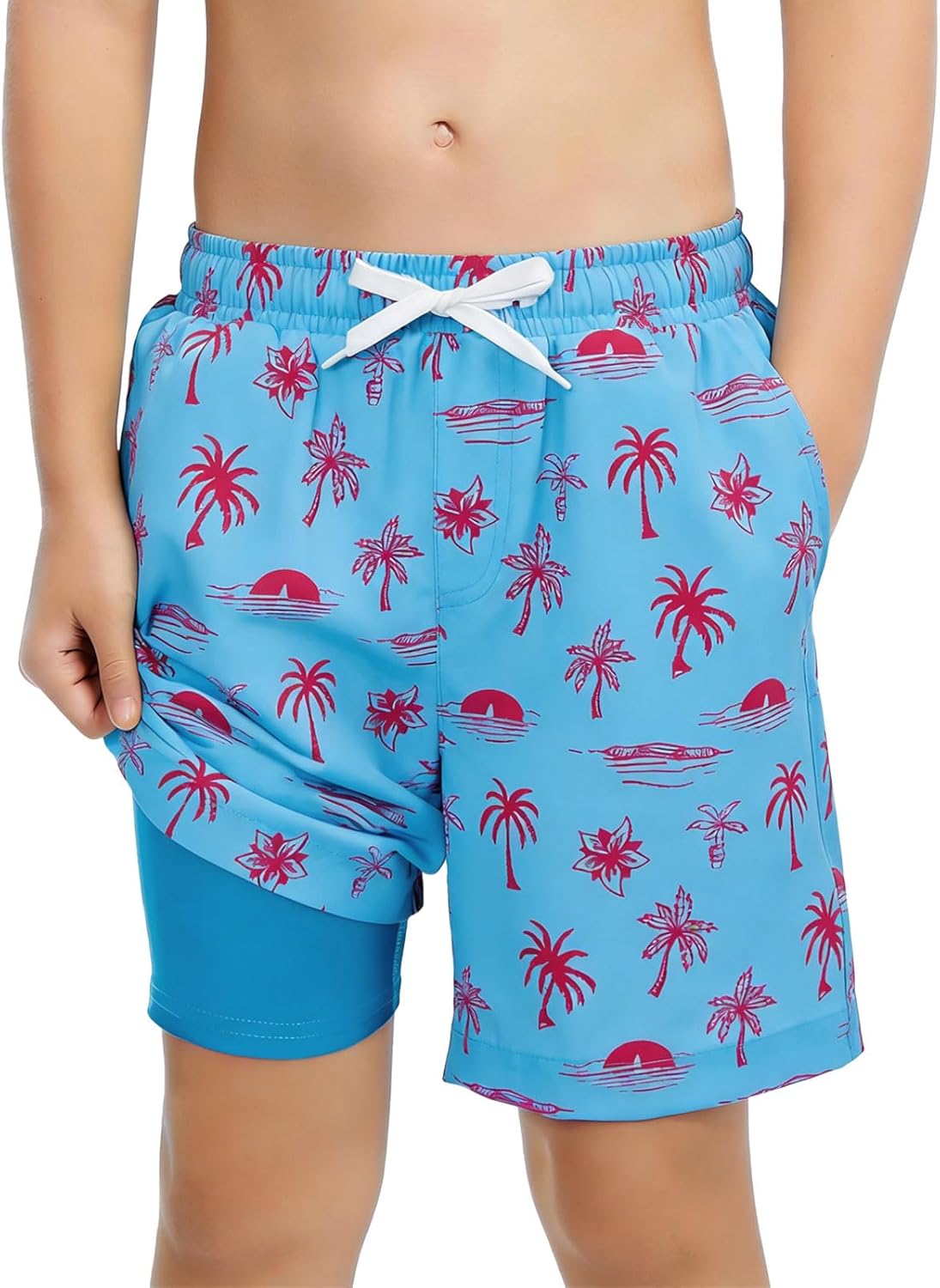 Haloumoning Boys Swim Trunks with Compression Liner Kids Elastic Waist Drawstring Quick Dry Swim Shorts Bathing Suit 5-14Y