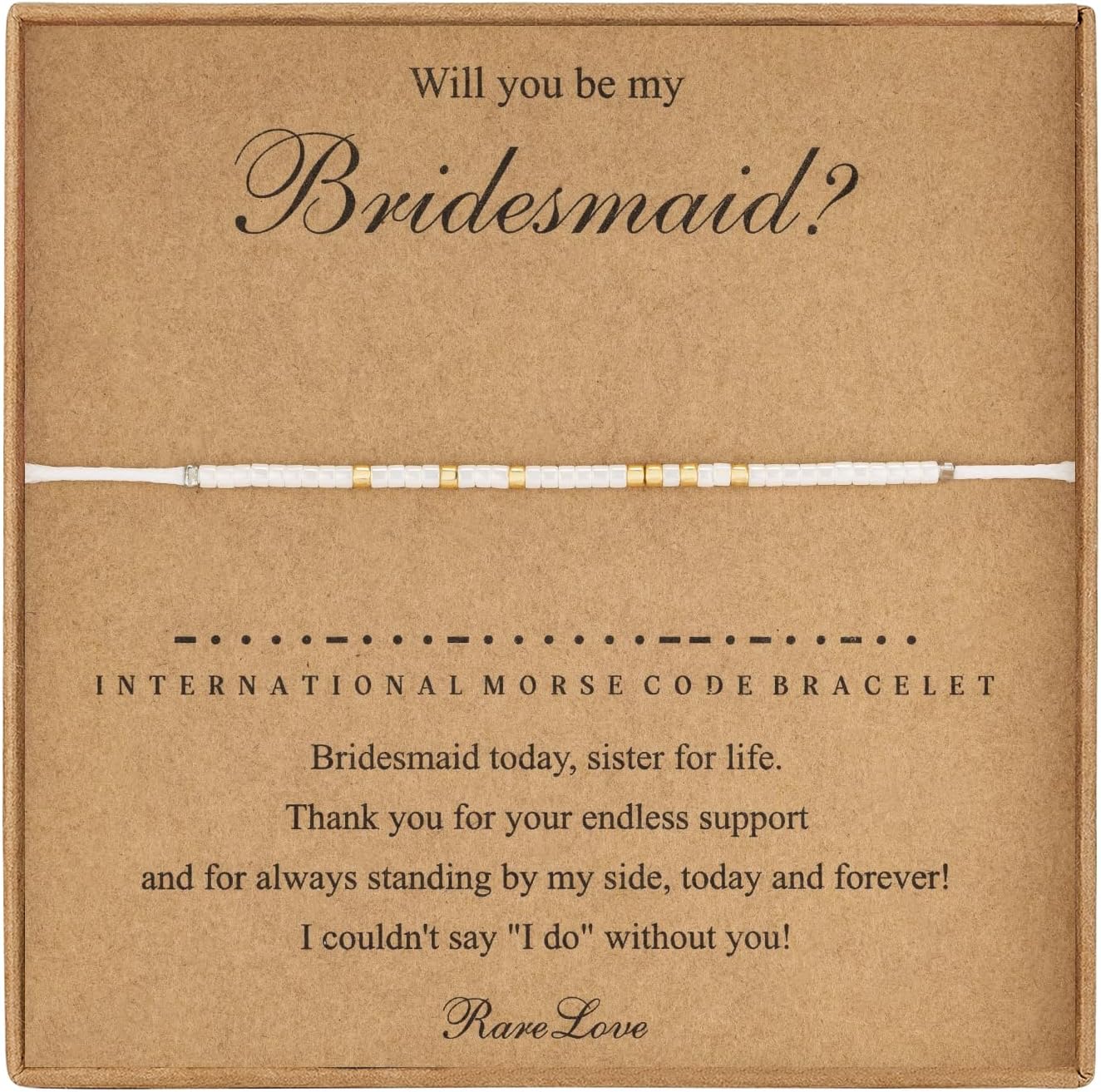 RareLove Bridesmaid Proposal Gifts Will You Be My Bridesmaid Morse Code Beaded Bracelet for Women Bachelorette Gifts White Gold Pony Seed Tiny Beads