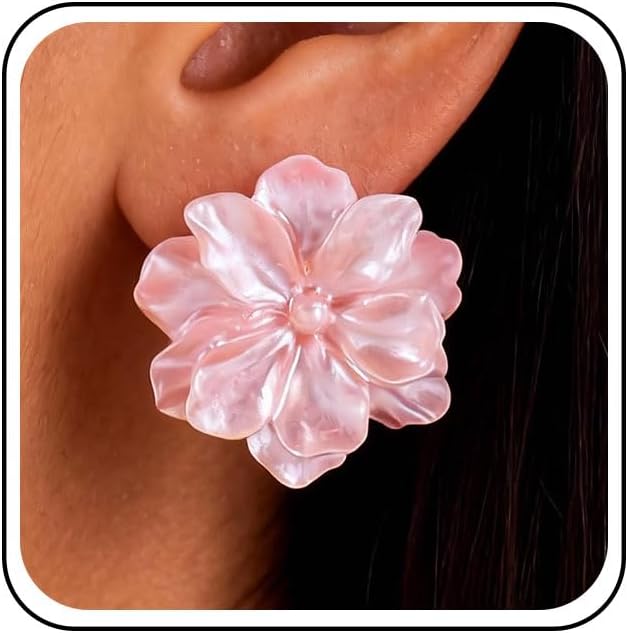 Boho Pink Acrylic Flower Stud Earrings Pink Enamel Flower Earrings Resin Petal Earrings French Camellia Earrings Jewelry for Women